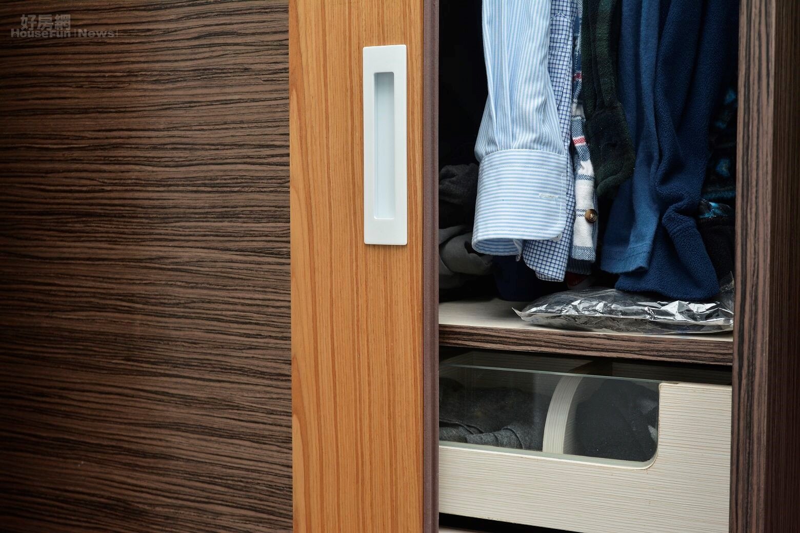 衣櫃門縫都有膠條,除避免碰撞生產生噪音,也可以增加耐用度