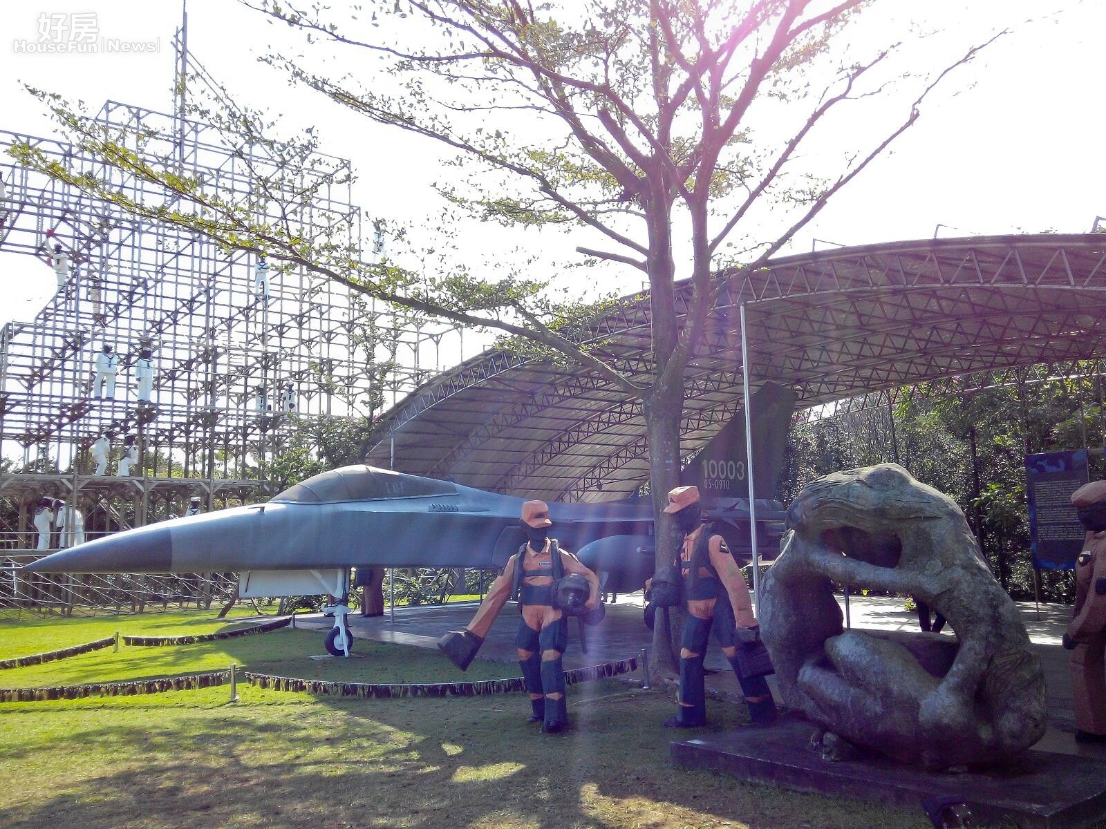 在逆光下看見的空軍基地,讓人分不清真假,以為有飛官正在準備啟航。