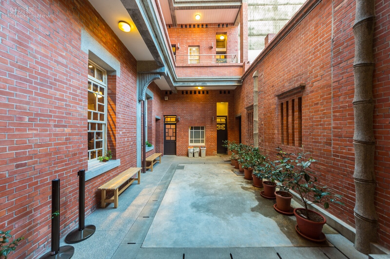 文青一小時—紫色大稻埕,古厝品茶香(上) 穿過一樓第三進到後面天井,又是另一個截然不同的景色。整個天井部分被大片的紅色磚牆所圍繞,雖然看得出後期整修的痕跡,不過卻一點也不減當年大戶人家的氣勢。 1081 上一張 下一張