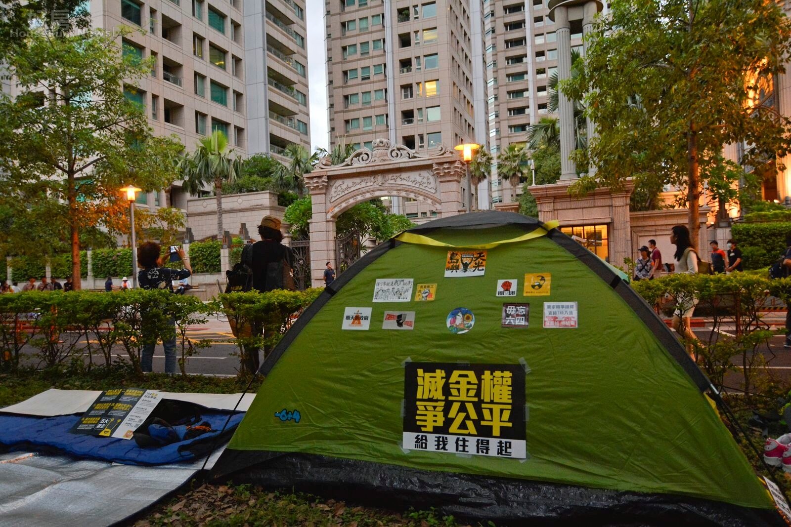 帳棚上貼滿了島嶼天光等文宣。
