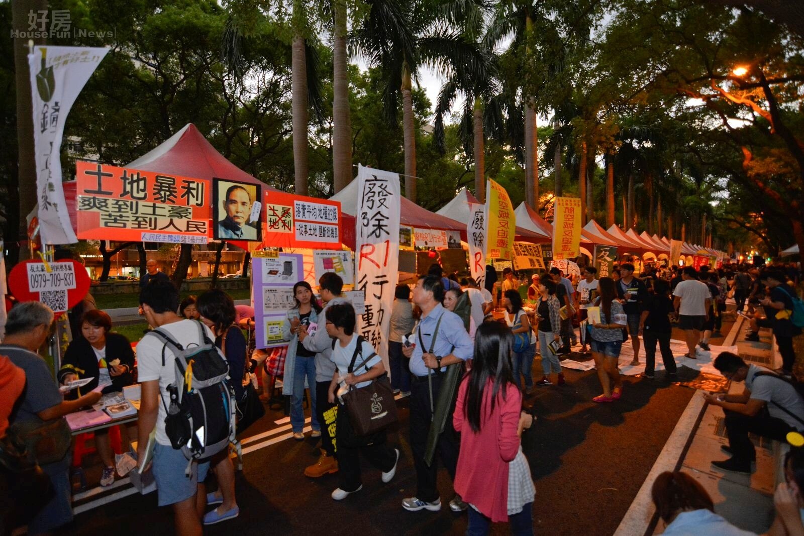 越晚人潮越多,而國父孫中山的圖像也被掛在帳棚上格外顯眼。