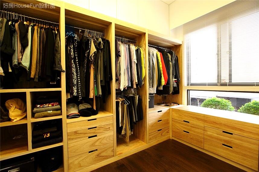 爆炸的衣櫃,一定要打造一間放滿超美衣服的更衣室阿!用木頭材質打造的儲藏空間,讓更衣間充滿清新的感覺。