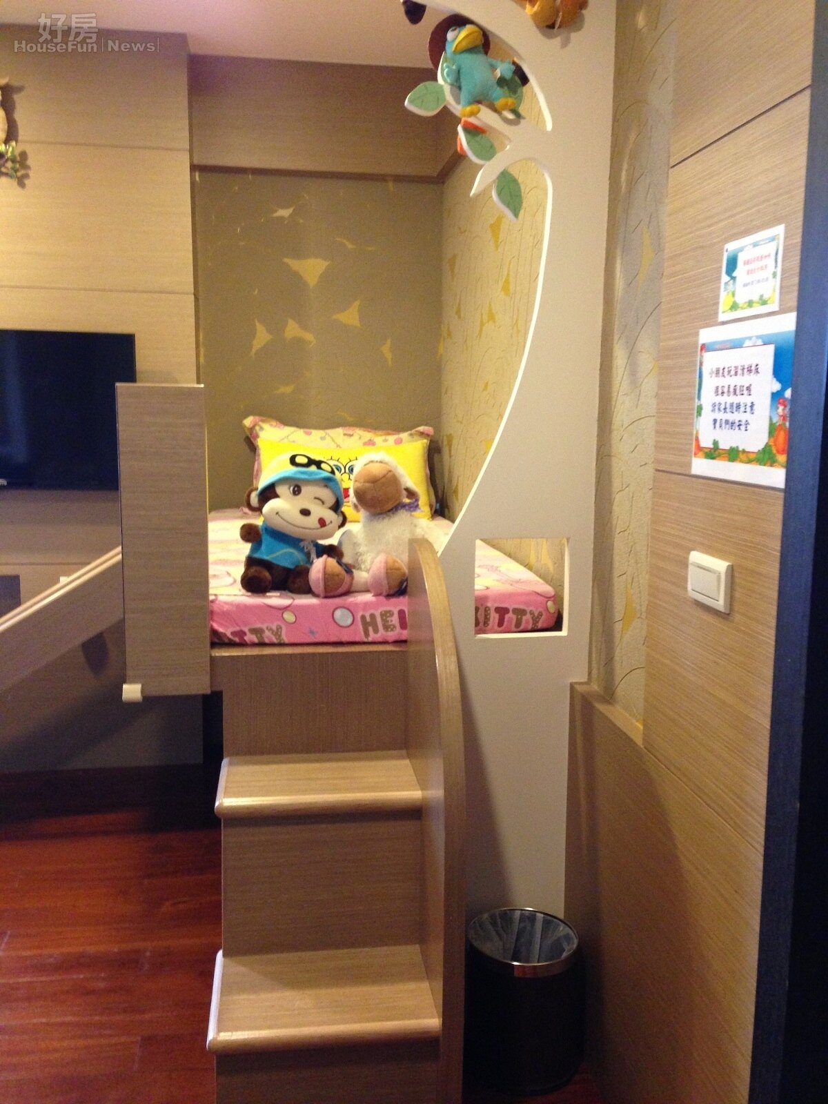 峇里島風,木作的樹架不僅可以擺放玩偶,也可以當作造景。