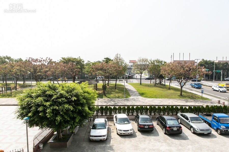 福德爺宮二樓看出去風景,對面就是基隆河。每年101大樓跨年放煙火時,人潮洶湧,就連警局都要來這裡成立指揮中心。
