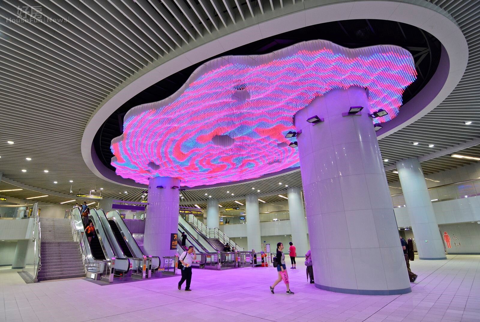 台鐵的連接通道橢圓大廳特地設置了LED燈的造景藝術