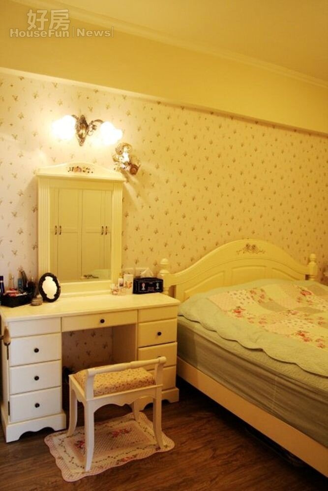 8.大片碎花壁紙,白色古董化妝台,就是舒適的主臥。