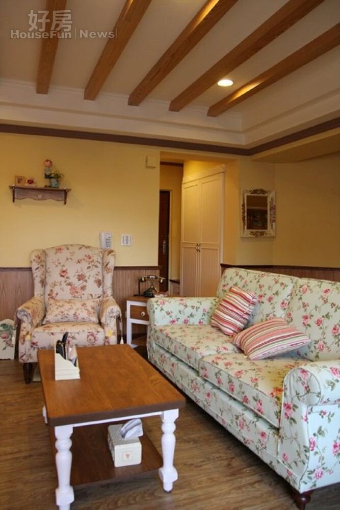 4.碎花沙發搭配大地色的地板,很有美國南部的鄉村風格。
