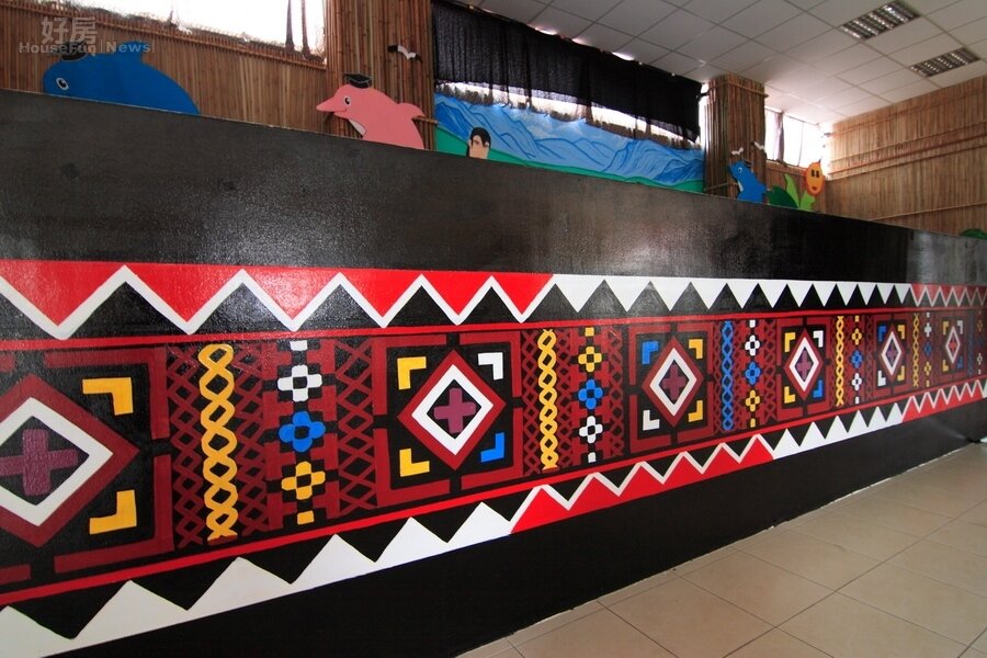 活動中心舞台牆壁上的平埔族文化圖騰。