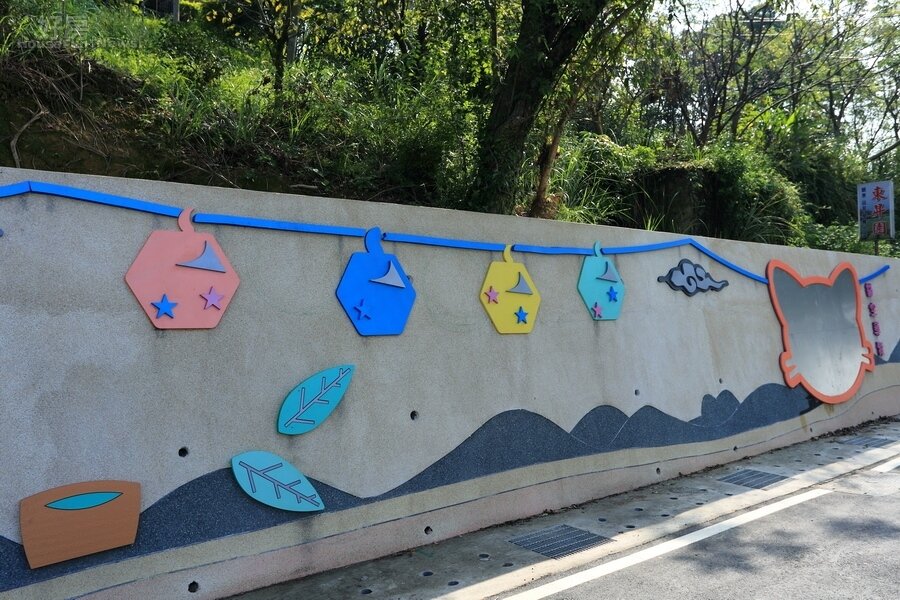原本單調的水泥牆,在重新彩繪,加入貓纜、貓的剪影以及茶葉,變得繽紛又美麗。