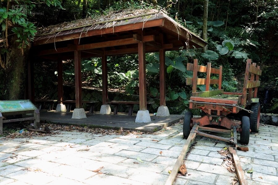 步道中的涼亭旁停放了一台現在少見的牛車,可惜缺乏維護已經開始破爛。