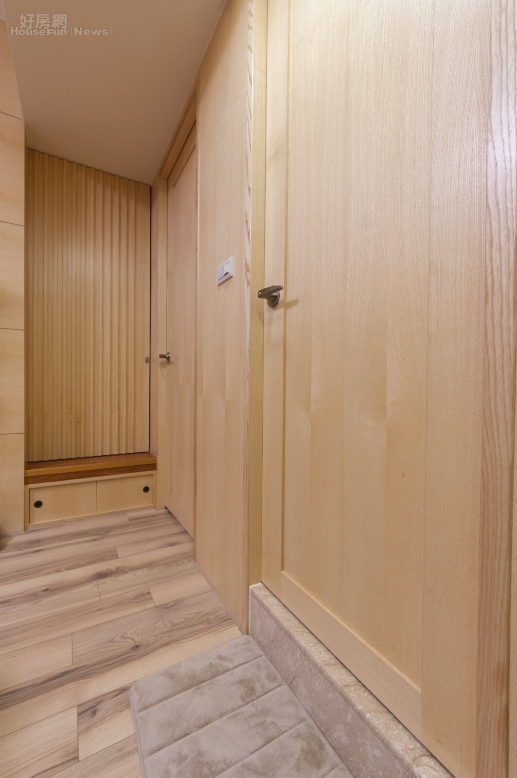 防刮木質地板是夫妻倆與小朋友最喜歡的居家空間,就算冬天再冷也可以光著腳,不需要穿拖鞋保暖。