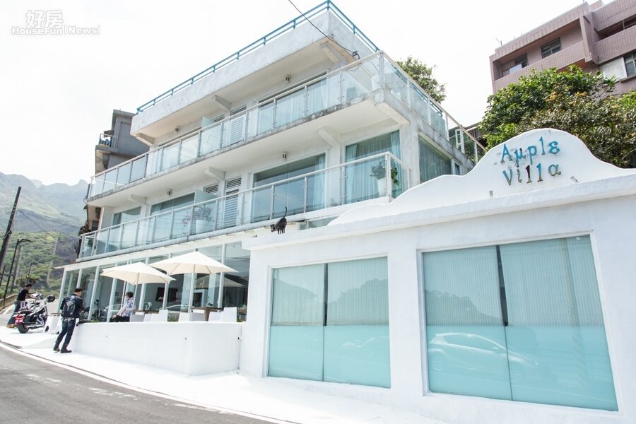 白色的建築與淡藍色的玻璃與欄杆,營造出一股希臘愛情海氛圍。