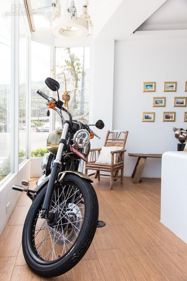 店內擺放了一架大型重機,民宿主人也是重機愛好者。