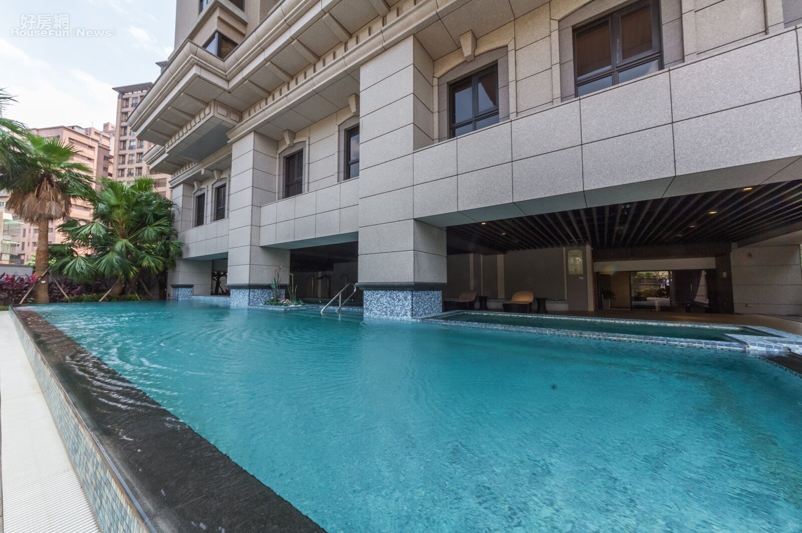 中庭公共設施最令人嚮往的莫過於超大游泳池,不僅設施完善且兼具隱私性。