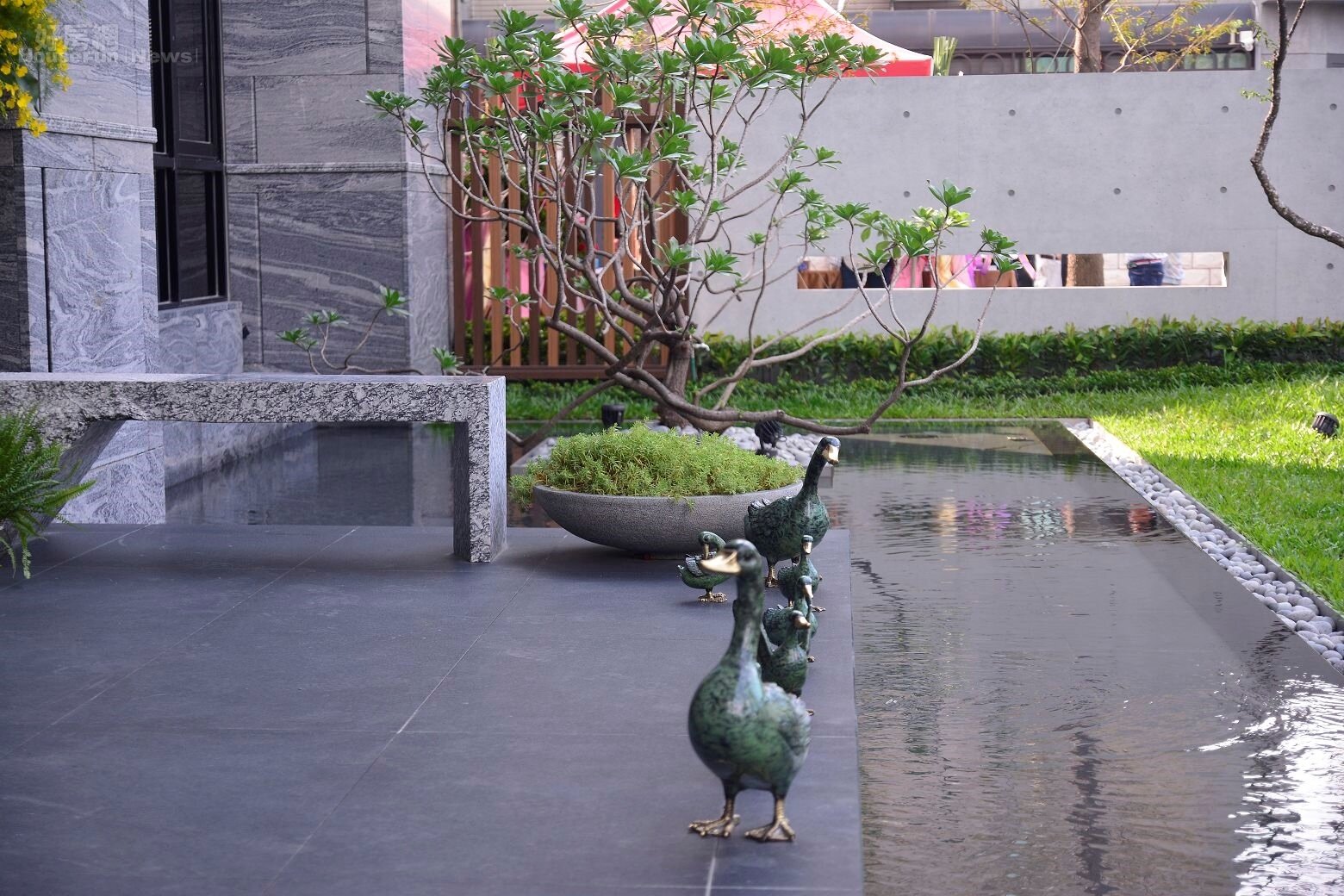 戶外擺飾也小有趣味,鴨子在水池旁嬉戲