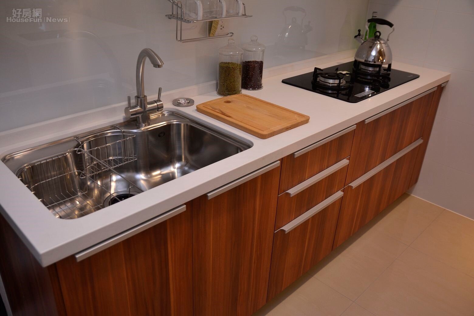 流理臺也特別設計為木製風格