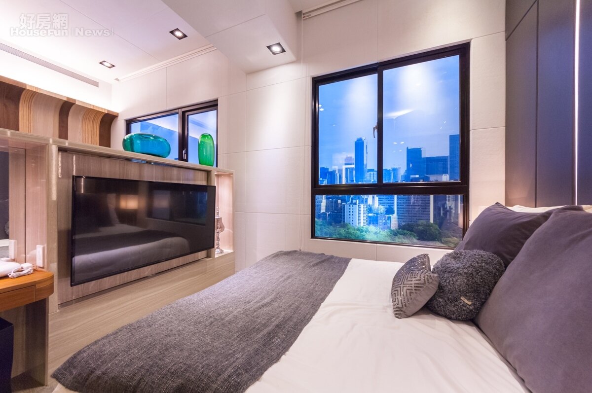 八十萬打造自我風格小豪宅 為了節省空間,臥室中的電視與客廳共用,利用轉軸旋轉電視。在客廳時就轉向客廳,在臥室時就轉向臥室,這個概念其實台灣早已出現,就是汽車旅館。大片的對外窗引入的除了璀璨的陽光,還有室外美麗的風景。 4390 上一張 下一張