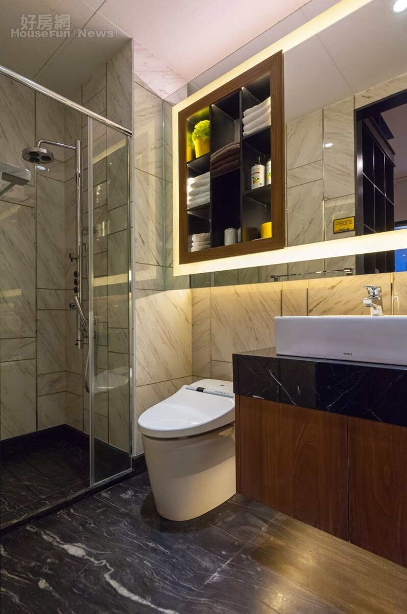 八十萬打造自我風格小豪宅 裝潢費僅80萬元,最主要的則是除電器用品外,衛浴與廚具設備都是建商提供。這在許多新成屋的建案中已經是常態,差別就在贈送的設備的價格而已。當然,室內空間13坪對於空間利用必須要到極致,因此這裡示範的衛浴空間就只有乾濕分離沒有泡澡用浴缸。牆壁與地面都採大片紋路石材,並利用不同顏色進行區隔。燈光部分則多採用間接照明,增加空間的舒適感受。 2464 上一張 下一張