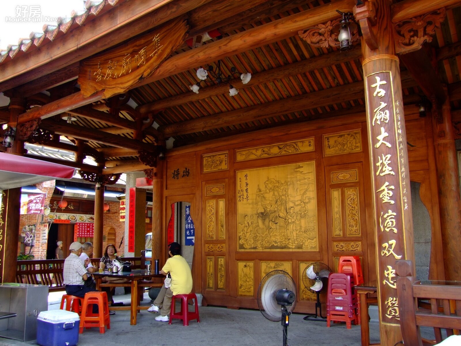 重新興建完成的廟口戲臺,成為當地人休閒話家常的休憩區。