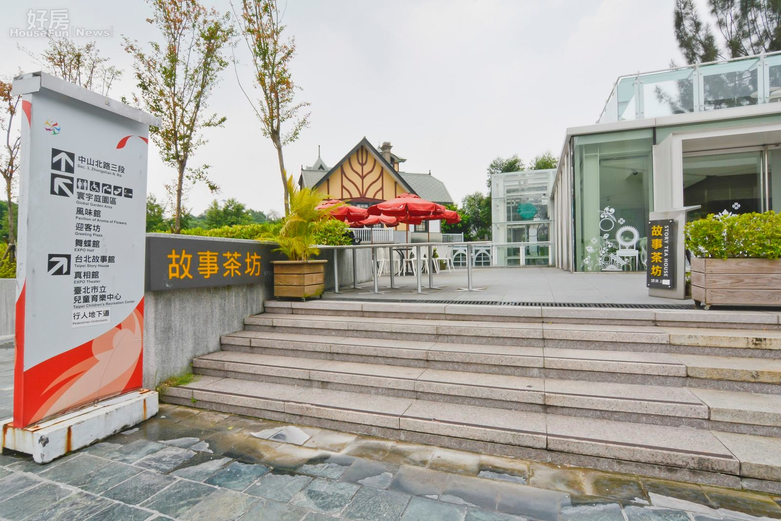 花博公園美術園區 於台階上可見左邊的故事館與右邊的咖啡廳結合,漫步完歌德式建築的風情浪漫後,不妨移動腳步,沉浸在咖啡香氣之中,暫時忘卻城市壓力的煩惱。(圖文/好房News記者 陳韋帆) 428 上一張 下一張