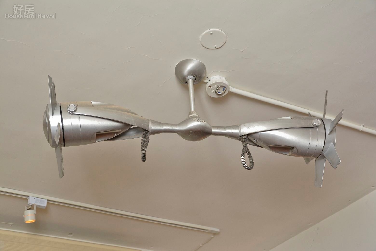 老公寓改造咖啡廳/日式混搭獨創設計感-issyoni ni 天花板上掛著十分特殊的電風扇,充分表現出混搭風的設計感。老闆打趣著說,電風扇主要是裝飾,因為只有左右兩邊能轉,中間並不能動,所以店內溫度還是靠冷氣控制。(好房News記者 陳韋帆/攝影) 1435 上一張 下一張