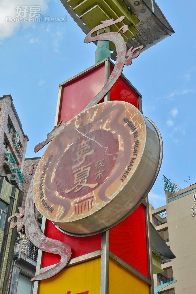 歷久不衰-台北後火車站商圈 寧夏夜市LOGO雙龍代表著兩排攤販,而雙龍所含的珠子則代表建成圓環為小吃發源地,其燈籠代表華燈初上的夜市景象;到寧夏吃小吃之餘不妨細細觀看,裡面含有著老台北人對圓環的深厚情感。(圖文/好房News記者 陳韋帆) 902 上一張 下一張