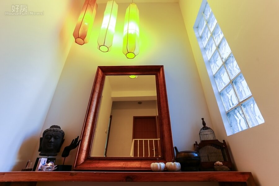上二樓臥室的轉角,光線穿透玻璃磚灑滿了一角的亮麗。
