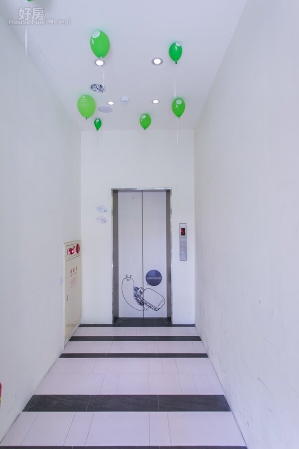簡單的電梯口佈置,傳達出這間旅宿的簡約生活特色。