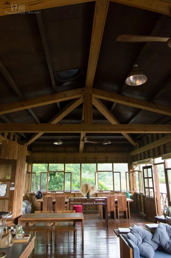為了讓視覺更為舒適沒有壓迫感。石牆咖啡屋內部特別採用挑高的設計。