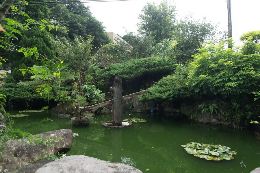 一到石牆仔咖啡館,首先印入眼簾的是一池翠綠色池塘與參天老樹,在炎熱的午後越發顯得清涼。