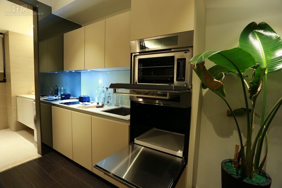 擺脫光棍!只要200萬,打造兩人甜蜜空間 小夫妻兩人在現代社會中大都是外食為主,因此下廚開伙煮飯的機會不多,在廚房洗手槽旁邊可設計幾個格位,放烤箱、烤麵包機、微波爐與熱水瓶會更為方便。綠色植物處則可放置冰箱。 1521 上一張 下一張