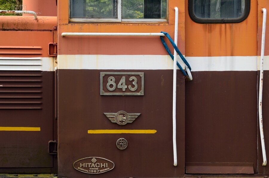 車頭側身可以很清楚的看到台糖標誌,以及製造機車頭廠商日立與製造年份。