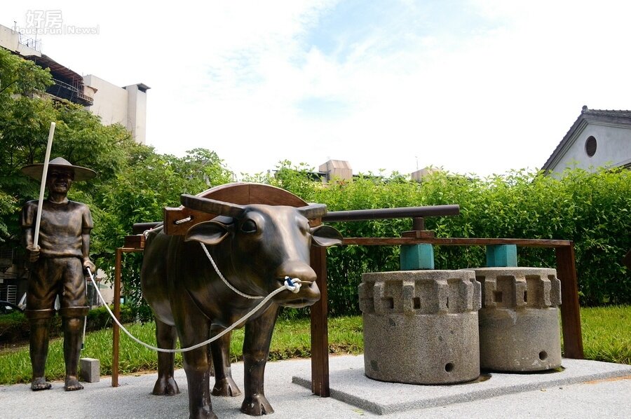 在機械還不普及的年代,要壓蔗蔗糖,都是仰賴獸力。現場還原當年製糖的情形。