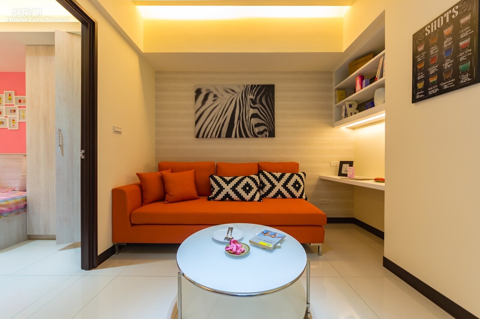 70萬打造舒適小宅 將角度回到客廳。客廳一樣可使用的空間並不大,不過設計師還是硬擠出了一區作為閱讀、加班工作或是擺放電腦上網等多用途開放式小書房。因應居住在此的人口簡單,僅擺放三個座位款式沙發。照明部份採用間接照明以柔和整體氛圍。 4932 上一張 下一張