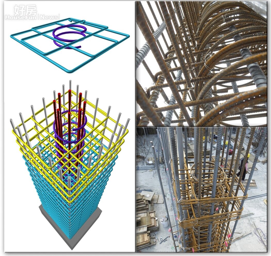 以中麗璞遇為例,在1F~1MF最主要垂直承載區的四支結構柱,特別採用"柱核心鋼筋耐震結構"之鋼筋工法施工