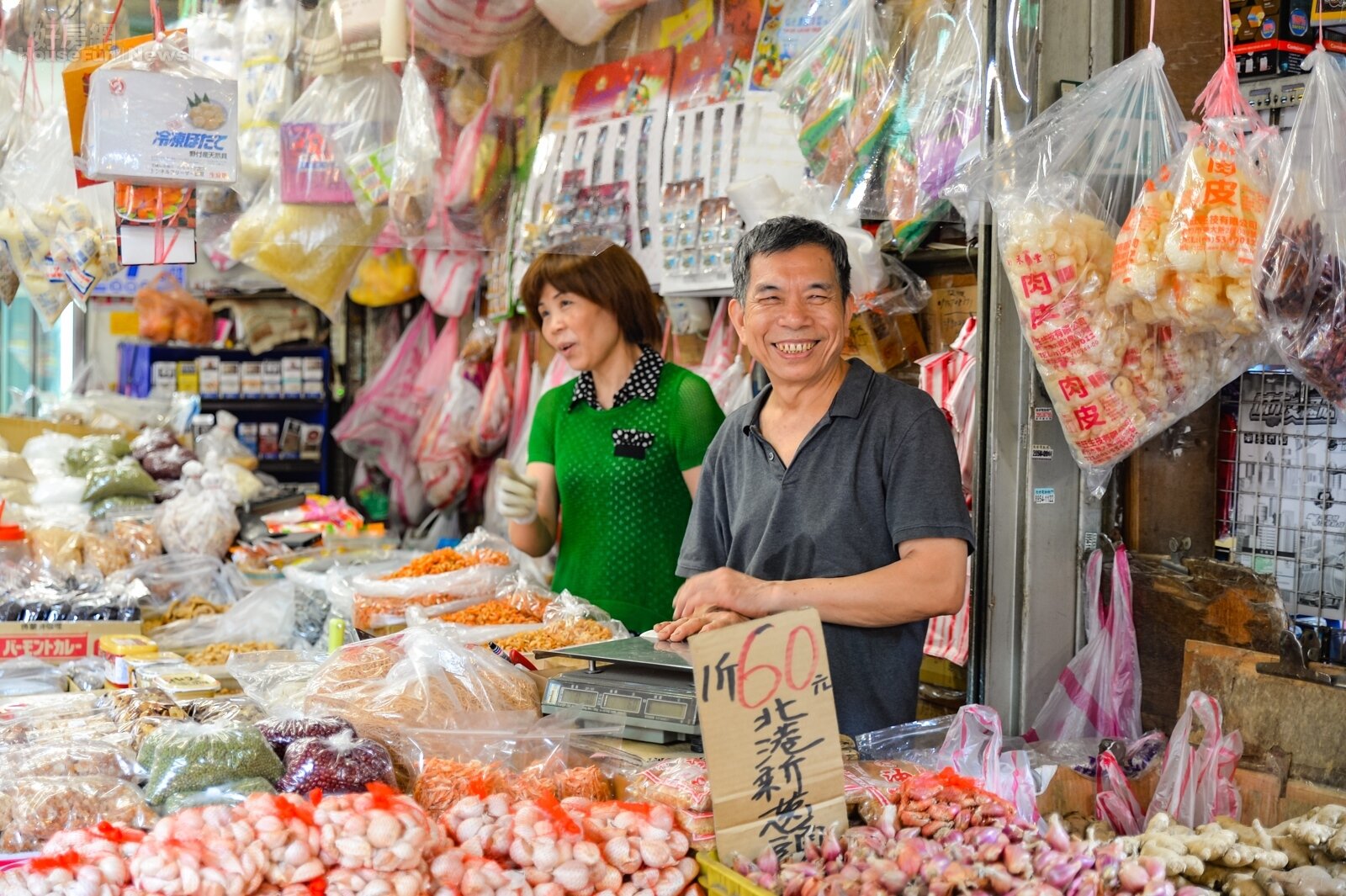 賣著傳統南北雜貨的老闆與老闆娘,靦腆的笑容下有著對產品安全衛生的堅持。