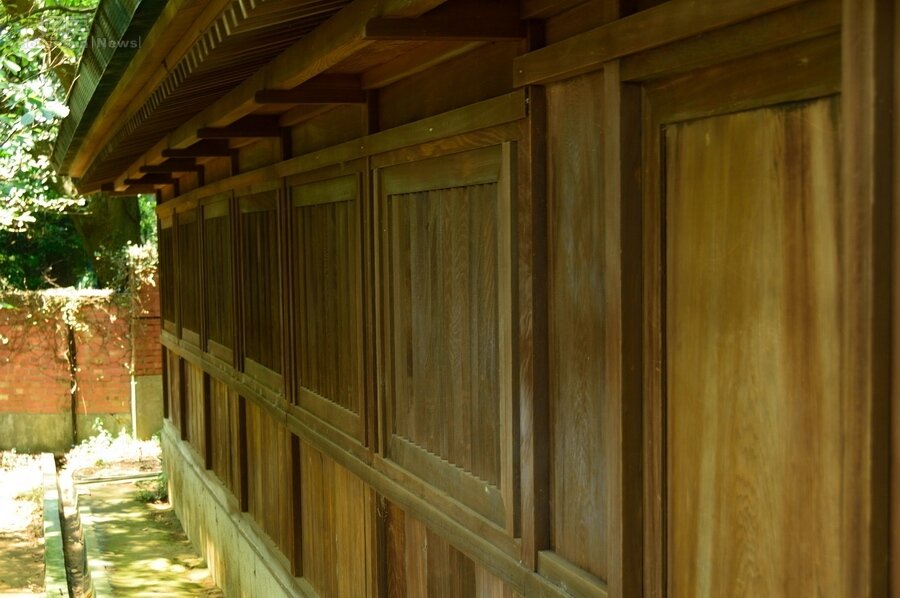 台灣唯一僅存日式神社─桃園神社 中門左右兩邊「瑞垣」與「透」。垣的外觀與機能類似於圍籬,視覺可直接穿透,現存在桃園神社外圍的木造垣稱為「瑞垣」。「透塀」位於中門左右兩側,可適時遮蔽直視本殿的視線,以免冒瀆神威。 1225 上一張 下一張