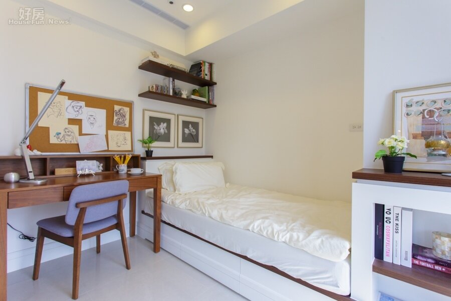 小資族北歐風裝潢只要兩百萬 由於建案公設比為30%,因此35坪實際上僅能使用約24坪,加上廚房與露台佔用了比較多的室內面積,因此在房間部分就較為狹窄,不過多利用創意也可以讓整體感覺變得寬敞。例如床鋪與櫃子部分可使用木作直接現場製作,再搭配簡約的書桌,家中的第二代就有自己專屬且實用的空間。 3011 上一張 下一張