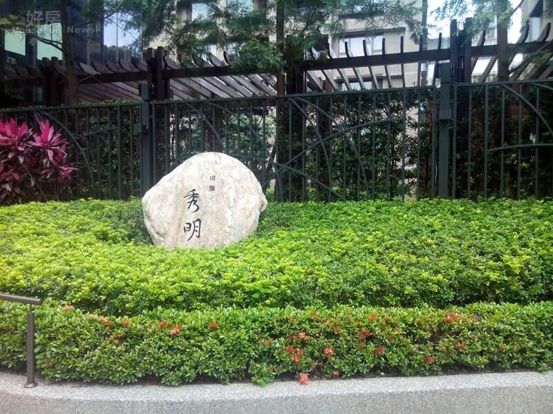 醒目的遠雄「秀明」石刻門牌,矗立在綠草之間格外別緻。