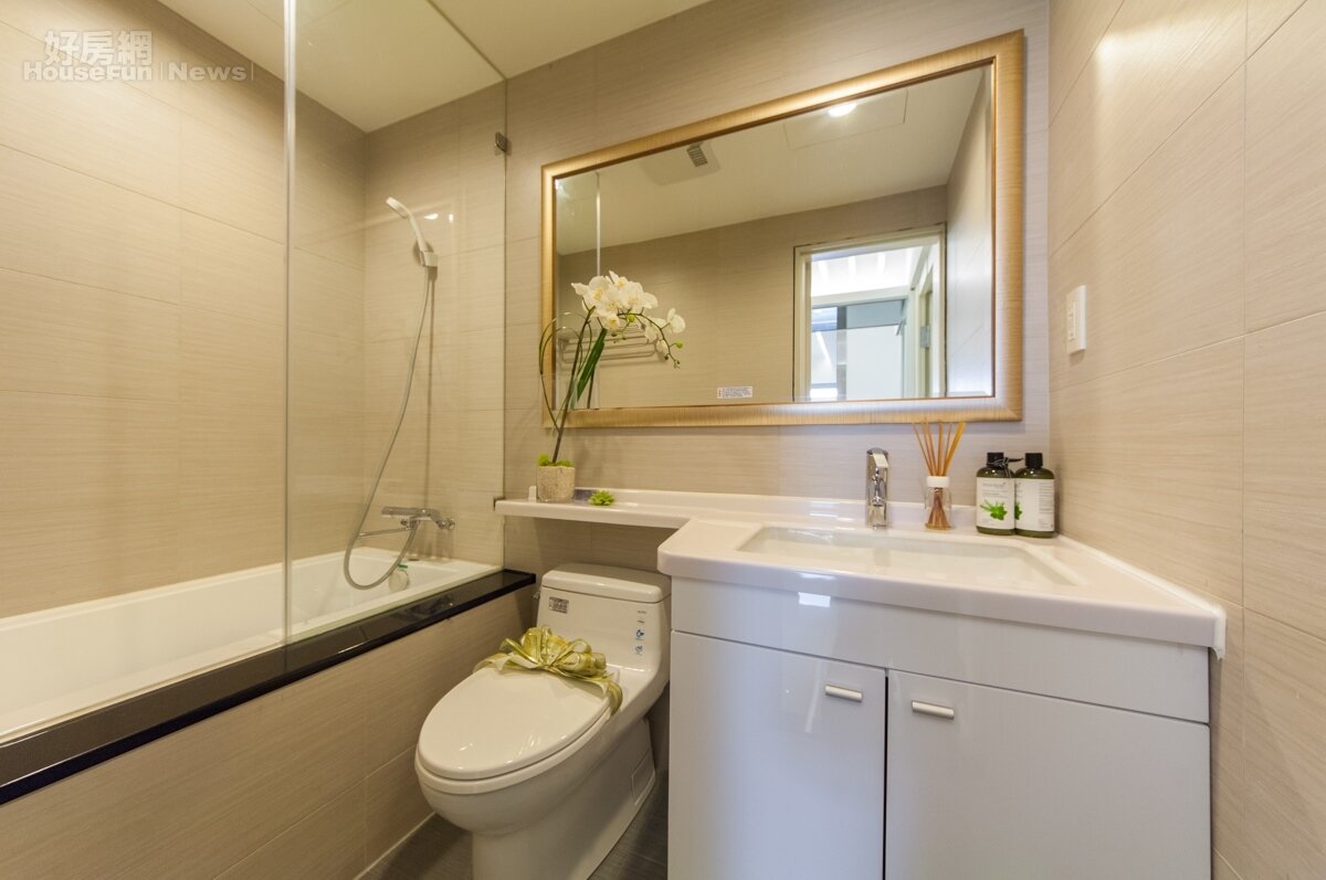 衛浴設備除了使用乾濕分離外,也保留了浴缸,方便有需要的家人泡澡。