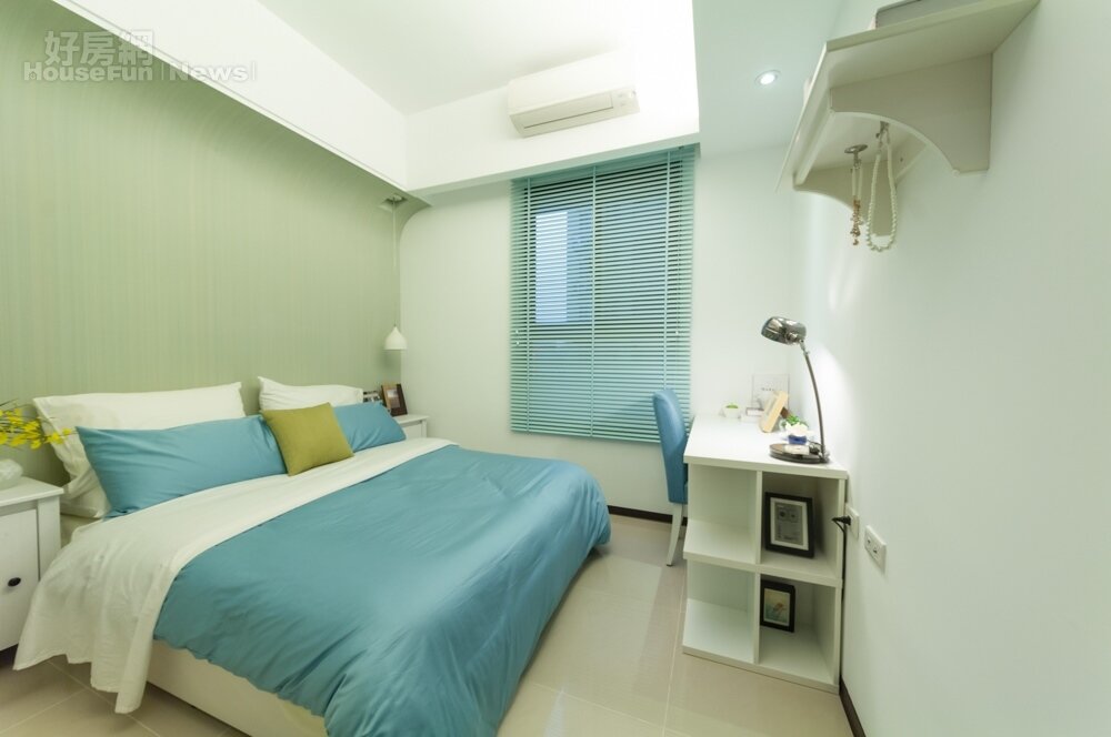 閨密聚會新天地,只要150萬 另外一間臥室較為麻煩的是床頭頂上有樑柱,換個角度變成床尾朝門床頭朝窗,在風水上都不是好的擺放方式。解決辦法不外乎做成吊櫃或者是床頭增加床頭櫃以避開樑柱直接壓頂的視覺壓力,但會犧牲掉床尾空間。其實只要透過如照片中這樣簡單的方式,木板直接往上延伸,到樑柱處形成一個曲線就可改善。 1868 上一張 下一張