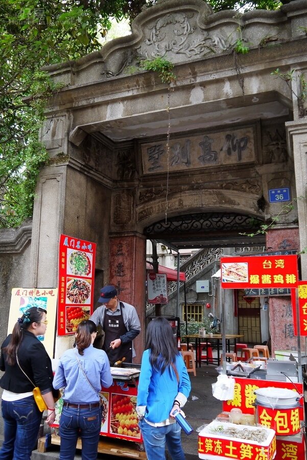 在鼓浪嶼百年別墅前看到小販販售台灣為名的炸雞排小吃,頗有時空倒錯之感。