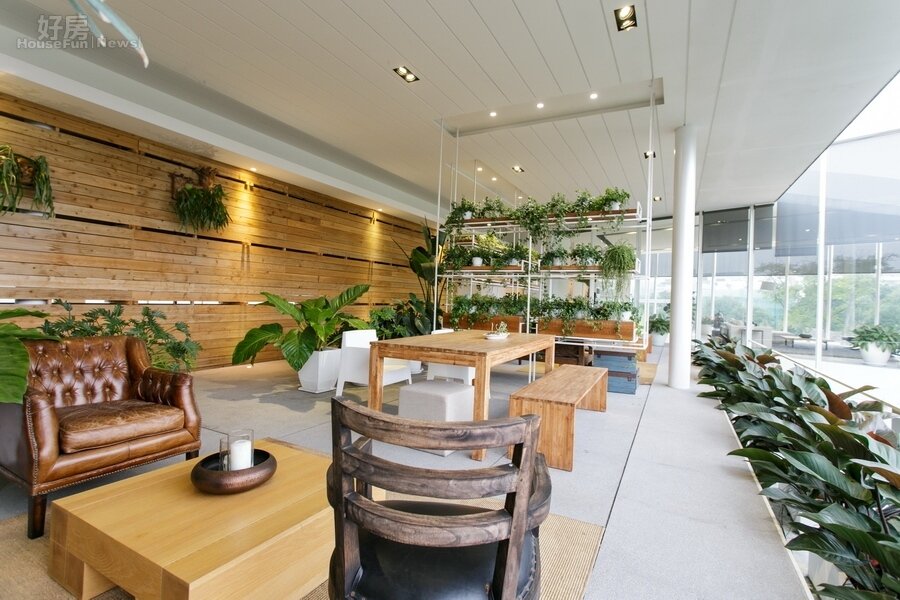 得意山莊接待中心如同淡水川普寬庭一樣,以半戶外的方式設立說明區。並透過植栽與以分區。邊喝咖啡邊聽說明,就算不買也會留下深刻印象。