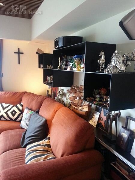 3.沙發後的鐵件層架是特別設計的,也具擋樑煞的作用。
