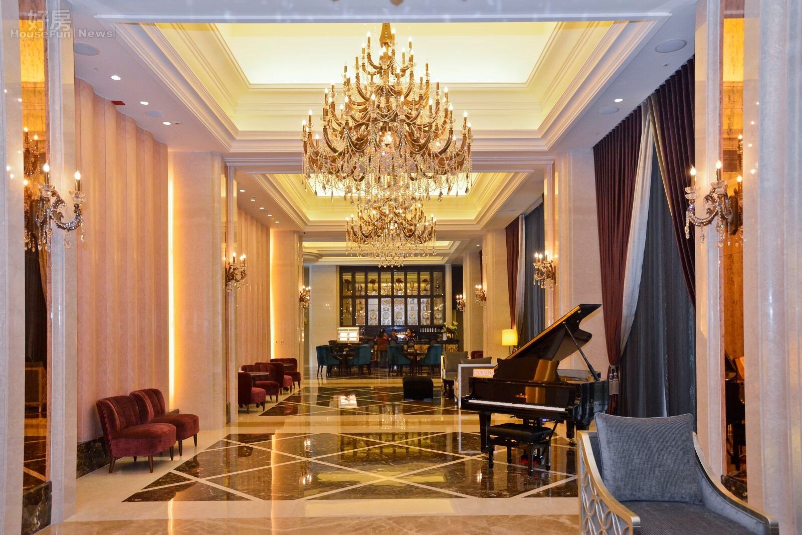 在一樓的會客室內,布置上有鋼琴、水晶燈等,同時有吧檯供餐點、飲料