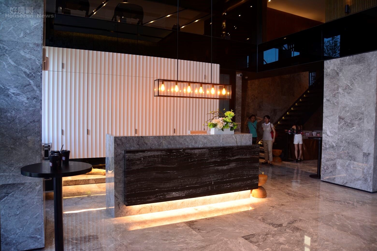 一樓接待廳櫃檯也採用石材