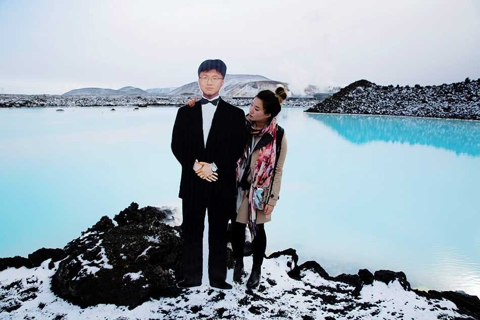 吉安娜(Jinna Yang)辭職帶著爸爸人形立牌去旅行。(引自Jinna Yang部落格)