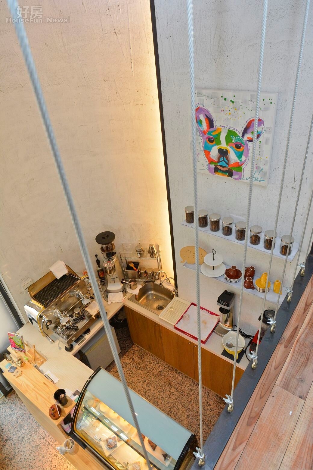 60萬輕鬆打造毛小孩空間/北歐工業風的寵物餐廳/寵咖啡 閣樓外表雖然是木板,但內部是以鋼骨結構構成,不僅耐用又很安全;最後在些微外露的鋼板上再以鋼索設計,不僅有防護作用又可增加心理上的安全感。 1379 上一張 下一張