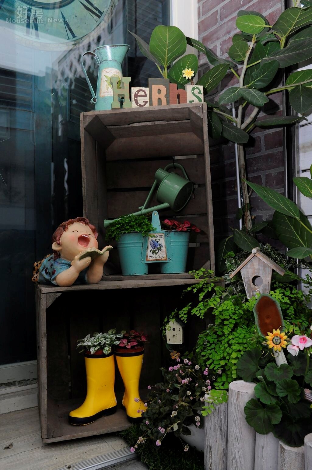 最後將擺飾、園藝插等道具雜貨隨意布置在盆栽和木箱上,增添活潑色彩,就大功告成囉!(好房News記者 陳韋帆/攝影)