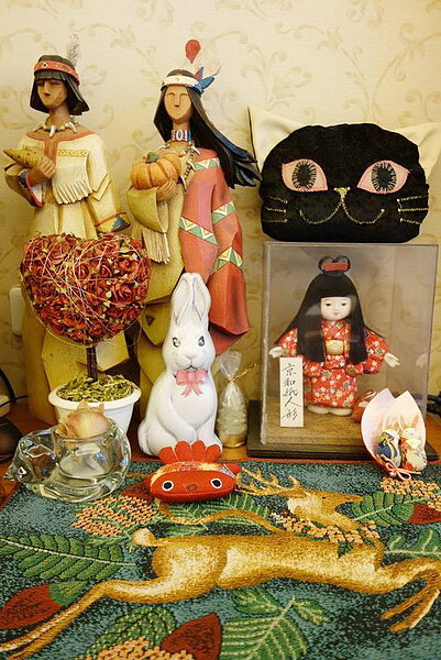 ←玄關處的紙人形娃娃搭配木質印第安人人偶,十分溫馨。